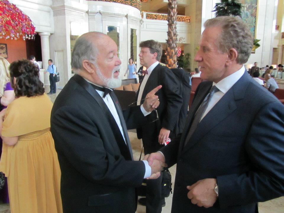 Me njërin nga fituesit e “Gusi Peace Prize International”, duke shtrënguar duart në ceremoninë e organizuar.