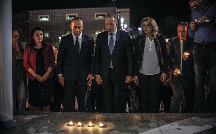 Kryeministri i Republikës së Kosovës Ramush Haradinaj i shoqëruar nga zëvendëskryeministri Behgjet Pacolli, sonte në Sheshin “Skënderbeu” në kryeqytet kanë ndezur qirinj në përkujtim të viktimave të sulmit të 11 shtatorit 2001, në Qendrën Botërore Tregtare në New York.