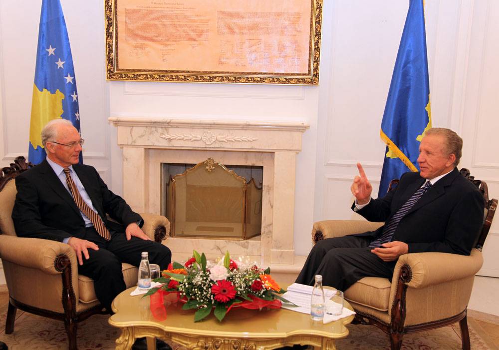 E falënderova z. Beckenbauer për vizitën në Kosovë, ku ai është i njohur si legjendë e futbollit gjerman dhe botëror, por edhe si një përkrahës i madh i sportit dhe sportistëve kosovarë. Gjatë takimit me legjenden gjermane të futbollit Franc Beckenbauer, në presidencen e Republikës së Kosovës.