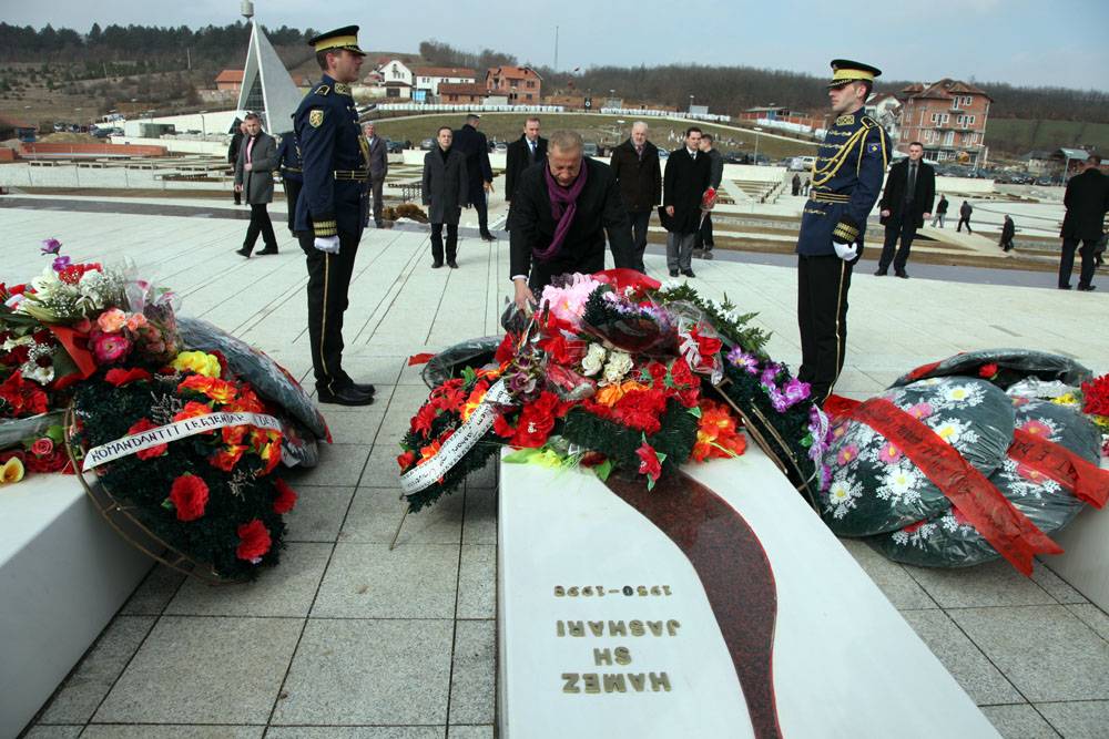 Me bashkëpuntorë në ditën e dytë të manifestimeve për shënimin e 13-vjetorit të Epopesë së Ushtrisë Çlirimtare të Kosovës, bëra homazhe para varrit të Komandantit Legjendar Adem Jashari dhe dëshmorëve të tjerë në varrezat e Prekazit.Duke vendosur kurora lulesh para varrit të Hamëz Jasharit dhe të rënëve të tjerë në Prekaz.