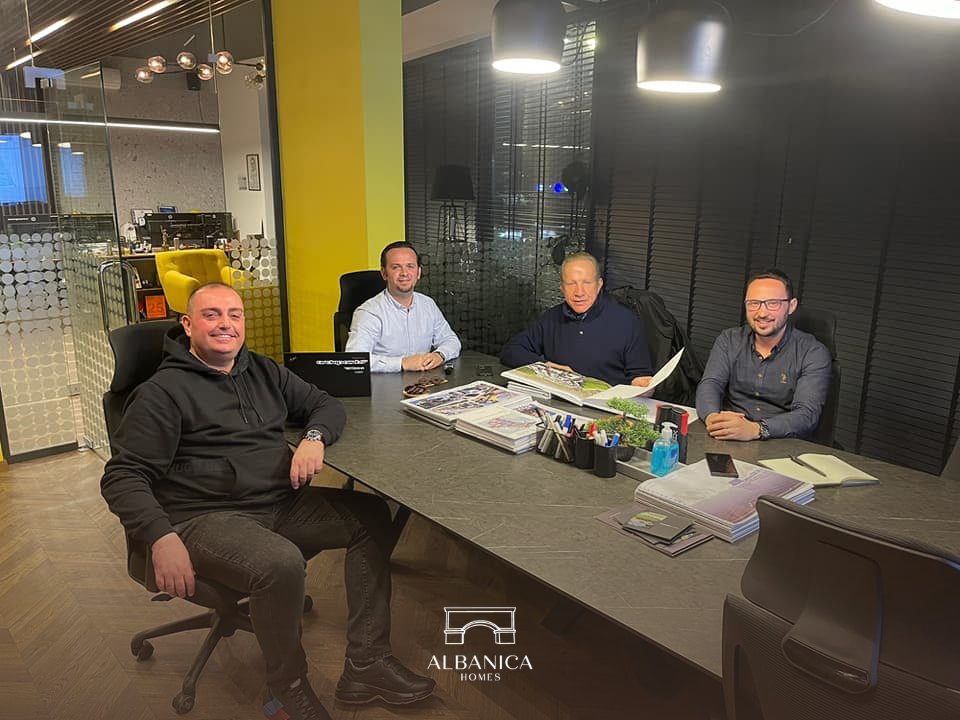 Në zyrat qendrore të “Albanica” në Prishtinë, presidenti i Mabetex Group, Behgjet Pacolli dhe Driton Gërbeshi, (CEO i Albanica Homes), me ekipen e tij duke prezantuar projektet e ardhshme presidentit.