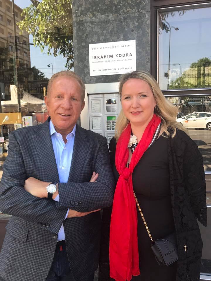 Në kujtim të piktorit shqiptar Ibrahim Kodra vendosa një pllakë perkujtimore në ndërtesën ku ai kaloi kohë të çmuar të jetës së tij. Me gruan time Mashen, para pllakes të cilën e vendosëm në kujtim të piktorit shqiptar Ibrahim Kodra, në ndërtesën ku ai kaloi kohë të çmuar të jetës së tij në Milano.