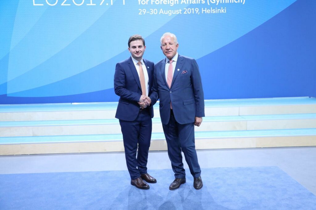 Mbërritja në Takimin Joformal të Ministrave të Punëve të Jashtme (Gymnich), që po zhvillohet më 30 gusht 2019, në Helsinki. Mbërritja në Takimin Joformal të Ministrave të Punëve të Jashtme (Gymnich), që po zhvillohet më 30 gusht 2019, në Helsinki. Në paraqitjen e parë para mediave thash se ky përcaktim është pa paragjykim për qëndrimet mbi statusin dhe është në përputhje me Rezolutën 1244/1999 dhe Opinionin e GJND-së për shpalljen e pavarësisë së Kosovës.