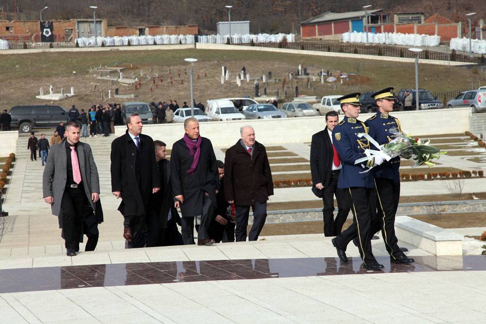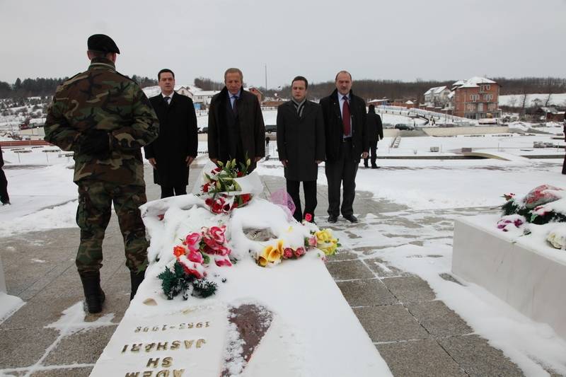 Homazhe para varrit të Komandantit Legjendar Adem Jashari dhe dëshmorëve të tjerë në Kompleksin Memorial në Prekaz