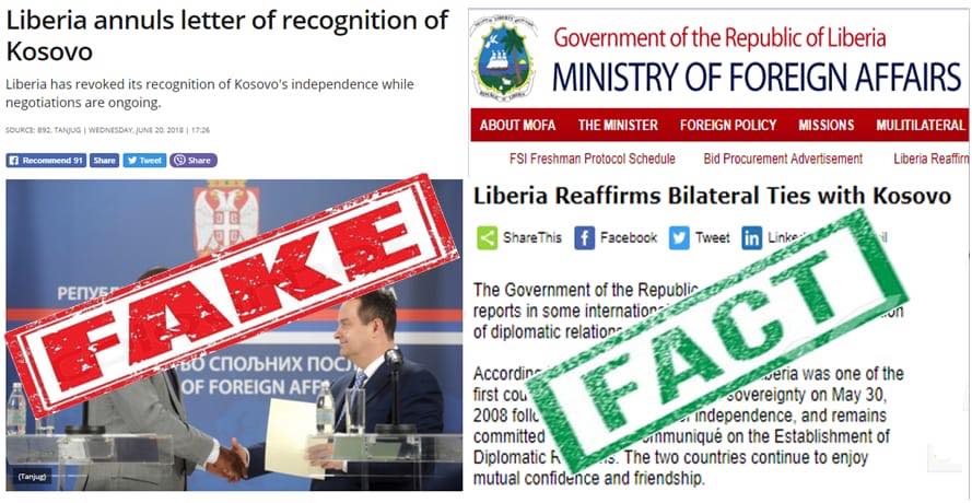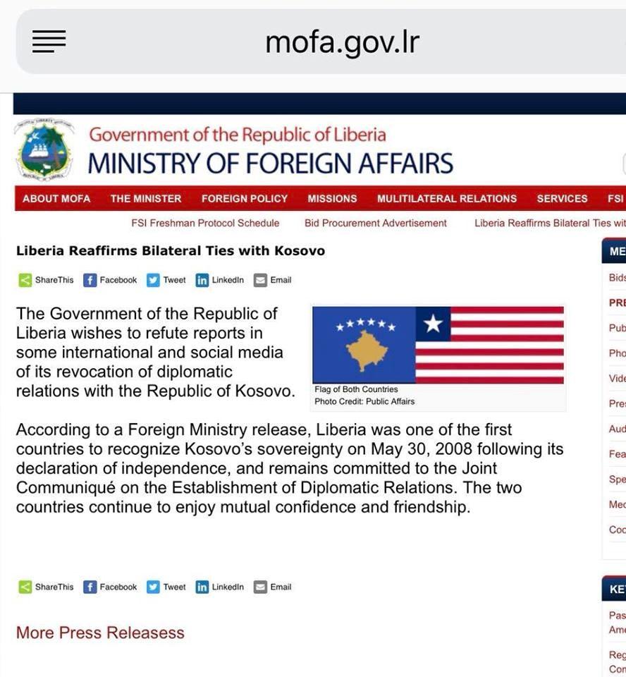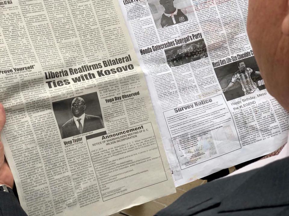 Monrovia, 27 qershor 2018 Në Monrovia të Liberisë ka bërë jehonë lajmi për forcimin e marrëdhënieve diplomatike ndërmjet Kosovës dhe Liberisë. Gazetat atje shkruanin dhe demantonin lajmet fake që Daçiq servonte në mediat propagandistike të Beogradit.