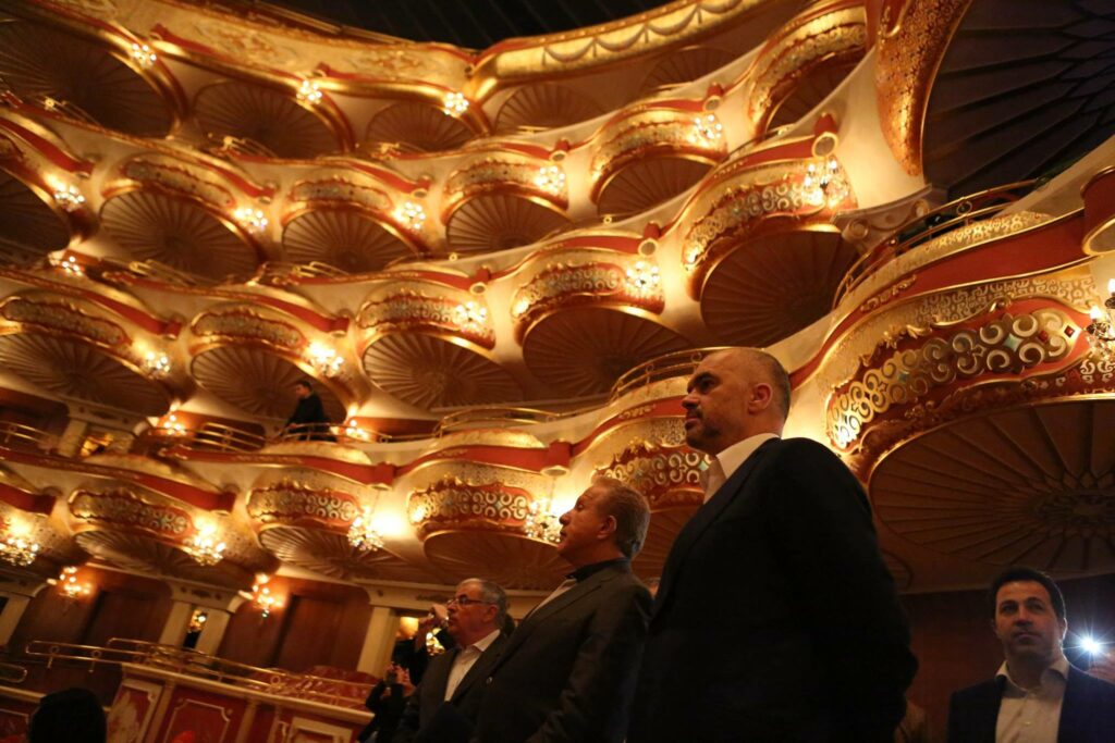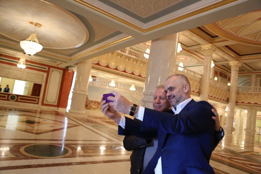 Një shkrepje selfie nga telefoni i kryeministrit shqiptar Edi Rama, kujtim nga vizita e paharruar në Kazakistan. Selfie nga këndi tjetër të cilën e postoi kryeministri Rama në rrjetin e tij Instagram, si kujtim nga vizita në pallatin e Operas dhe Baletit në Astana.