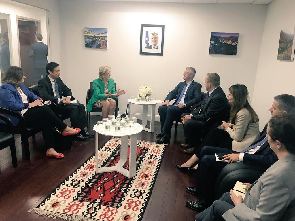 Gjatë qëndrimit në Nju Jork, pata kënaqësinë të takoj ndihmës sekretarin amerikan të shtetit për Evropë dhe Eurazi, Wess Mitchell. Me ndihmës-sekretarin Mitchell biseduam për thellimin e marrëdhënieve dypalëshe midis Republikës së Kosovës dhe Shteteve të Bashkuara të Amerikës, avancimin e agjendës sonë euro-atlantike, procesin e transformimit të FSK-së në ushtri të Kosovës, si dhe për fazën e fundit të dialogut për normalizimin e plotë të marrëdhënieve ndërmjet Kosovës dhe Serbisë.