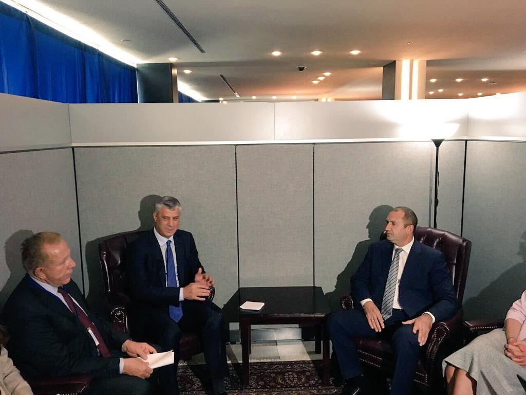 Kam falënderuar Presidentin Radev për ndihmën e Bullgarisë në shtetndërtimin e Kosovës, forcimin e demokracisë, si dhe për rrugëtimin euroatlantik të saj. Kosova mbetet e përkushtuar ndaj synimit të saj kryesor të politikës së saj të jashtme, anëtarësimit të plotë në BE dhe në NATO. E ftova presidentin Radev që të organizojmë në të ardhmen e afërt një forum të përbashkët ekonomik, i cili do të ndihmonte rritjen e vëllimit tregtar mes dy shteteve.