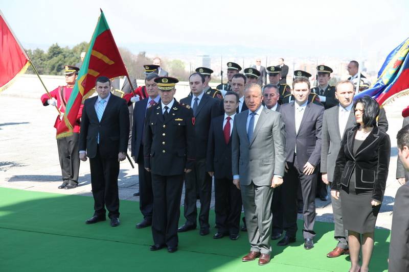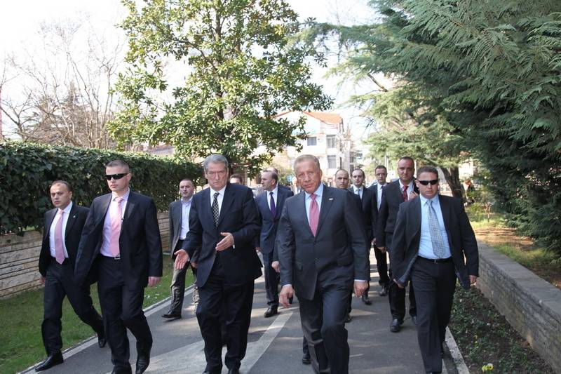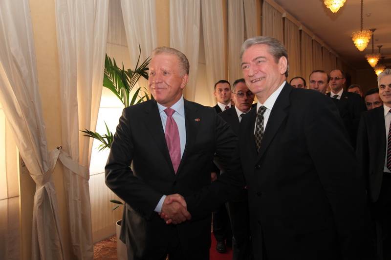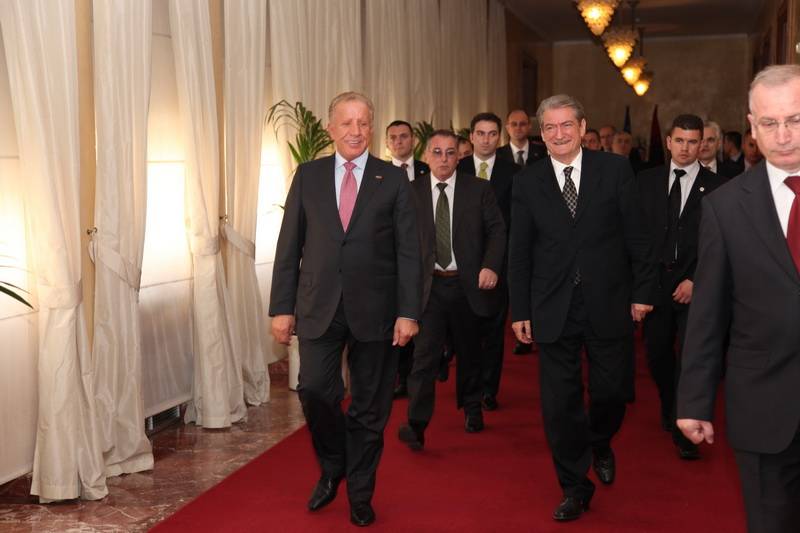 Pritja protokolare në kryeministrinë e shtetit shqiptar nga kryeministri, Sali Berisha. Shtrengim duarsh me kryeministrin shqiptar Sali Berisha, interesimi i mediave ishte shumë i madh.