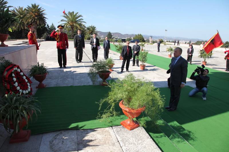Presidenti Pacolli vendosi kurora lulesh dhe bëri homazhe para Monumentit “Nënë Shqipëri” në Tiranë.Vendosja e kurorave u përcoll me ceremoni shtetërore nga Garda e Republikës. Vendosja e kurorave u përcoll me ceremoni shtetërore nga Garda e Republikës. Vendosja e kurorave u përcoll me ceremoni shtetërore nga Garda e Republikës, ndërsa Presidenti u shoqërua nga komandanti i Përgjithshëm i Gardës së Republikës së Shqipërisë, z.Ndrea Prendi dhe nga anëtarët e delegacionit të Kosovës, që e shoqërojnë atë në vizitë.
