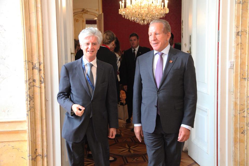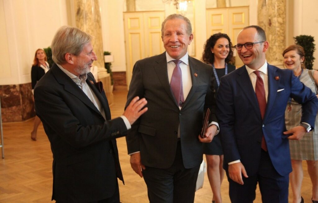 Vjenë, 30 maj 2018 – Në takim me ambasadorët Albert Rohan dhe Wolfgang Petrisch, pak para promovimit të librit biografik “New State, Modern Statesman”, në Akademinë Diplomatike të Vjenës.